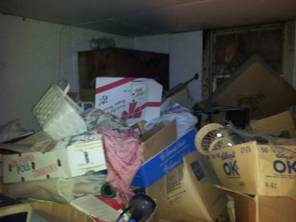 There are 3 rooms, a bathroom, and an attic which are boarded up and used for storage on the other side of my bedroom wall. That area has personal belongings from people from as early as the late 1800s–my landlord’s family–probably gold rush folk–who else settles up here? Forgotten lives in trunks and boxes stacked four high. Until now.