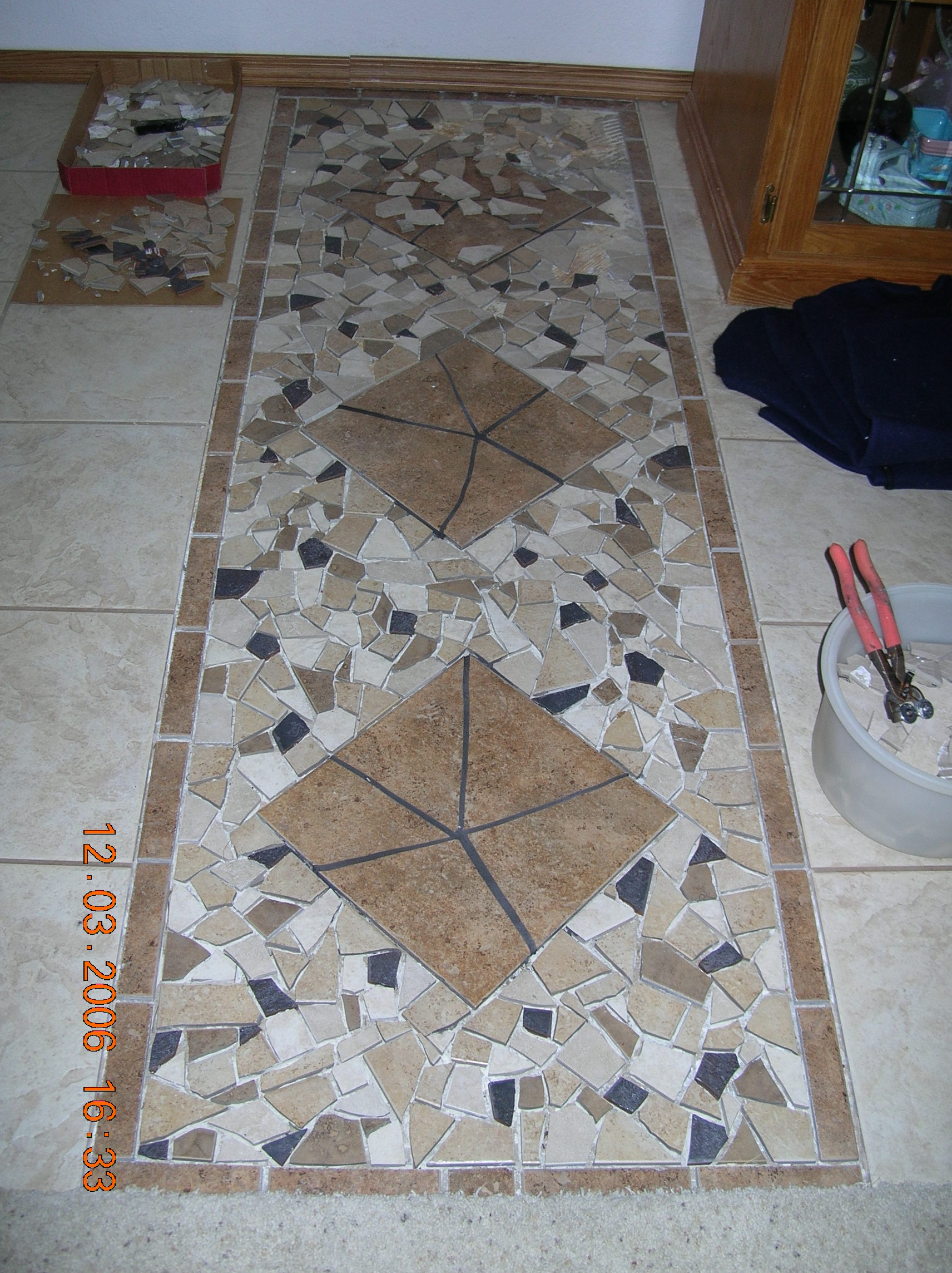 Mosaics Mosaic Floor Tile Mosaic floor tile installation Share this: Click to share on X (Opens in new window) X Click to share on Facebook (Opens in new window) Facebook Like Loading... Related Published by barb j beyers Retired RN/Women's Advocate. Poet, artist, nature lover, seeker NW EU, Spain, Native Am, Scotland View all posts by barb j beyers