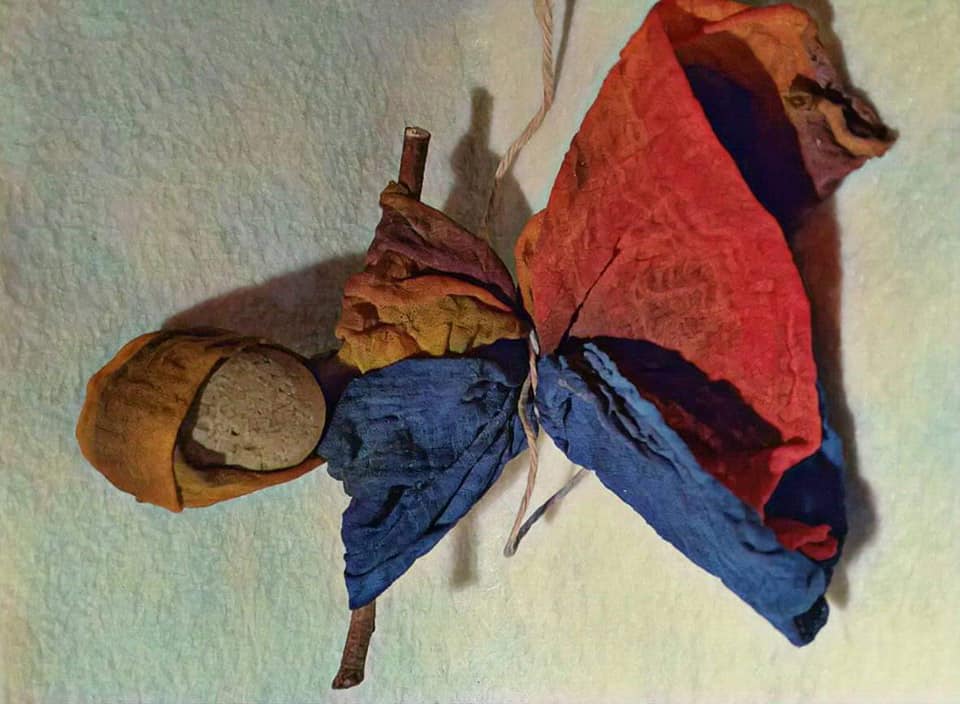 How I love this Sticks and Stones Barbling! She was made from some fabric I tie-dyed years ago. I was decorating vases, back then, wrapping them is dyed gauze or silk and putting lights or candles in them. I had just taken a silk dyeing class, so everything was being wrapped–vases, bottles, tables–I think I still have some around (oh, the stories they could tell). This Barbling reminds me of a whirling dervish–whirling in the sunlight, barefoot, laughing as she gathers herbs…so, of course, she went to my good friend, and nature lover, Marlene. xoxo.