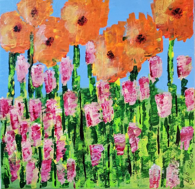Fine Art/Folk Art California Poppies and Crimson Clover Covid-19 Project #3 Acrylic on canvas 10 x 10 When stressed, I look for the grace of flowers. Share this: Click to share on X (Opens in new window) X Click to share on Facebook (Opens in new window) Facebook Like Loading... Related Published by barb j beyers Retired RN/Women's Advocate. Poet, artist, nature lover, seeker NW EU, Spain, Native Am, Scotland View all posts by barb j beyers